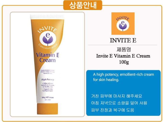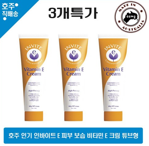 호주 명품 Invite E 항산화 피부 진정 회복 비타민 E 영양 크림 100g 3개특가, 100g, 3개 - 비타민E | 쿠
