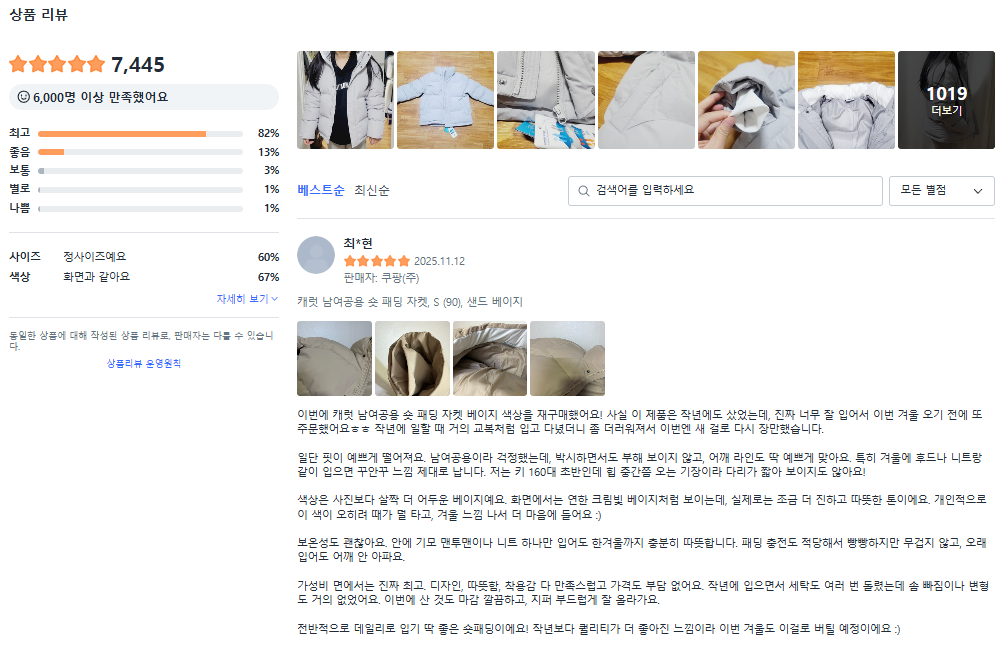 현재 별점 4.7점, 리뷰 7445개를 가진 캐럿 남여공용 숏 패딩 자켓! 지금 쿠팡에서 더 저렴하고 다양한 점퍼 제품들을 확인해보세요.