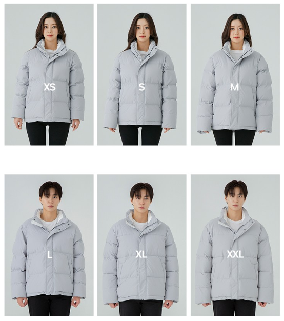 이 제품은 이름 그대로 남녀공용 오버핏 숏패딩이라