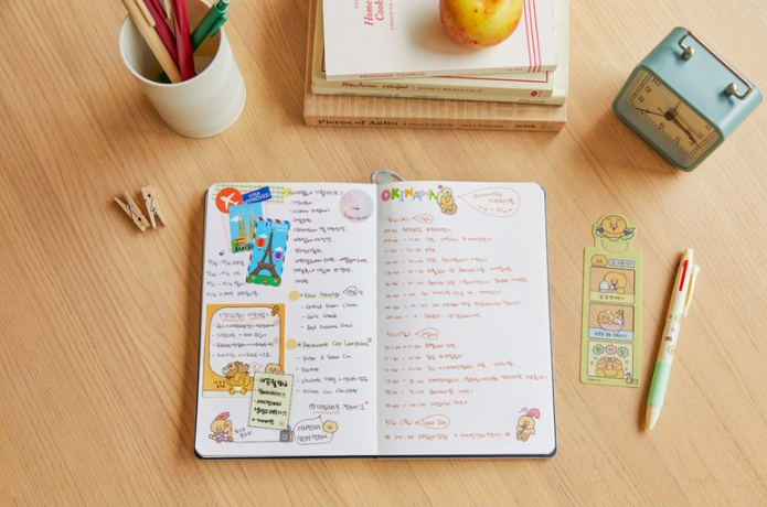 기본 다이어리와 함께 스티커, 북마크 등이 같이 들어 있는 구성입니다.