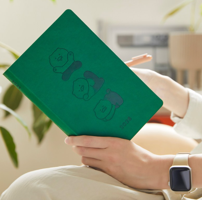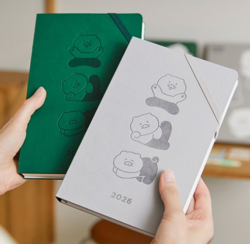 카카오프렌즈 춘식이 2026 다이어리 새해다이어리 스티커 북마크 다이어리 구성 그린 그레이 - 한