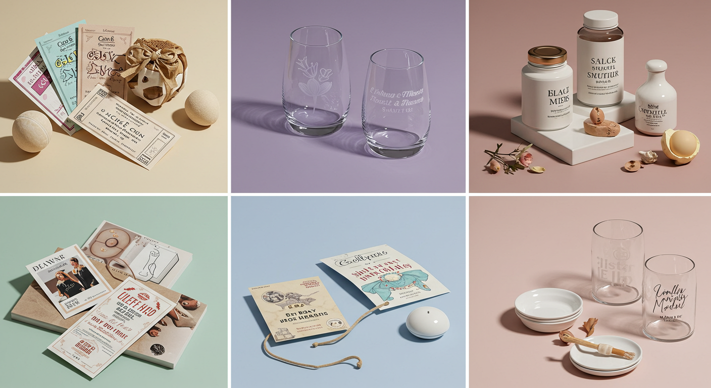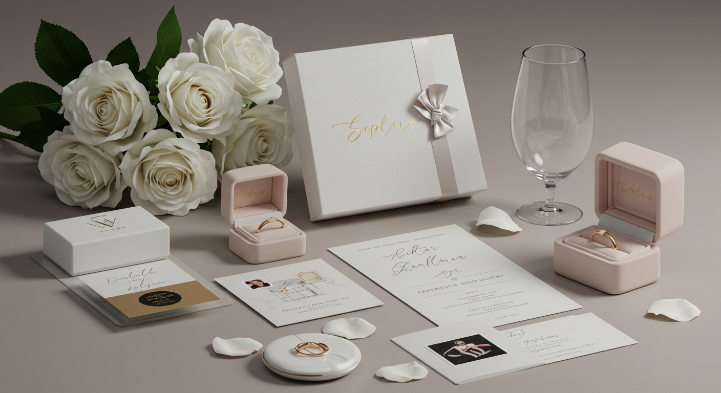 - 결혼 날짜가 새겨진 기념품: 결혼 날짜, 이름 이니셜 등이 새겨진 와인잔, 커팅 보드, 액자 등 세상에 하나뿐인 기념품.